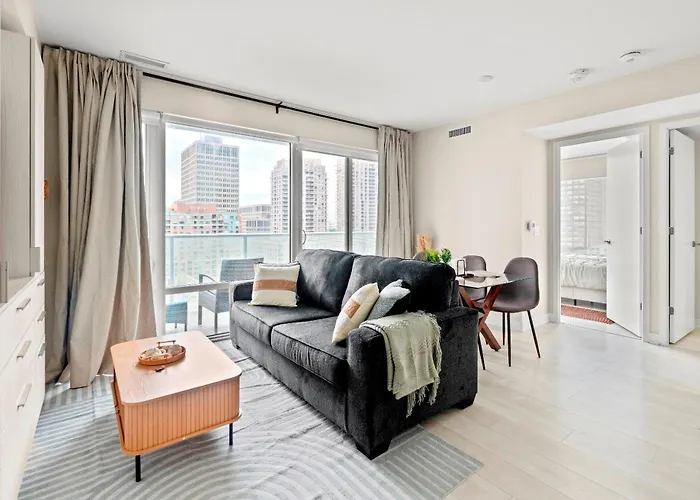 Das 100 m² große Panoramic 2 Bedroom Plus Den Condo Yonge Street Downtown Toronto in Toronto befindet sich rund 1 Kilometer vom Parlamentsgebäude von Ontario und lediglich 13 Gehminuten vom Eaton Centre entfernt. Gäste können WLAN sowohl für geschäftliche als auch für private Zwecke nutzen.
